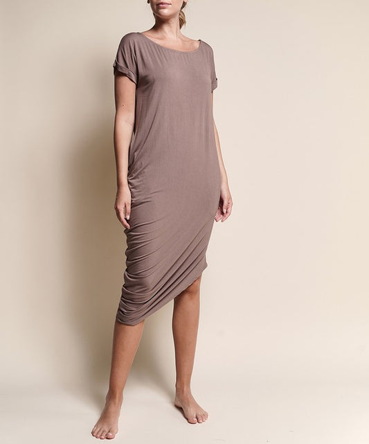 BAMBOO ASYMMETRIC DOLMAN DRESS WITH POCKETS