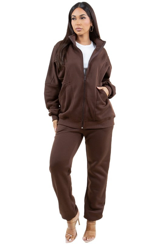 WOMEN FASHION ZIP SWEATSUITS PANT SET