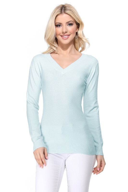 Women's Long Sleeve V-Neck Pulll Over Sweater Top