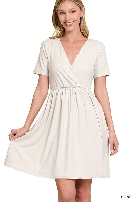 Brushed DTY Buttery Soft Fabric Surplice Dress