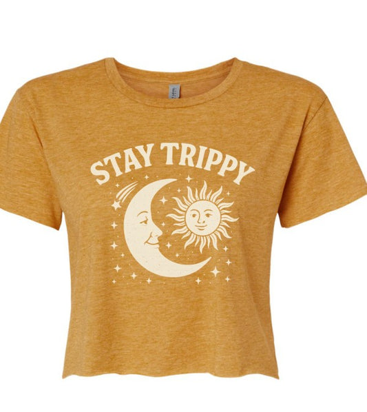 Regular price $30.00 USDRegular priceUnit price / perSale price $30.00 USDStay Trippy Moon and Stars Cropped Tee