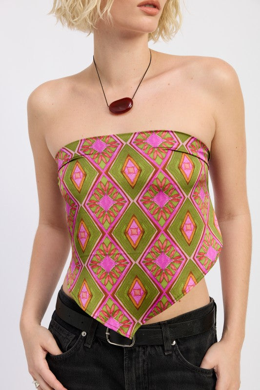 FITTED STRAPLESS STRIPE TOP WITH SIDE TIE ACCENT