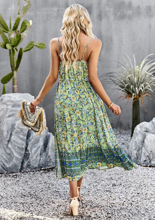PRINTED SPAGHETTI STRAP MIDI DRESS