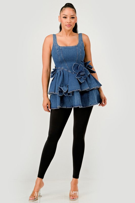 Ruffle Bloom Denim Peplum Top