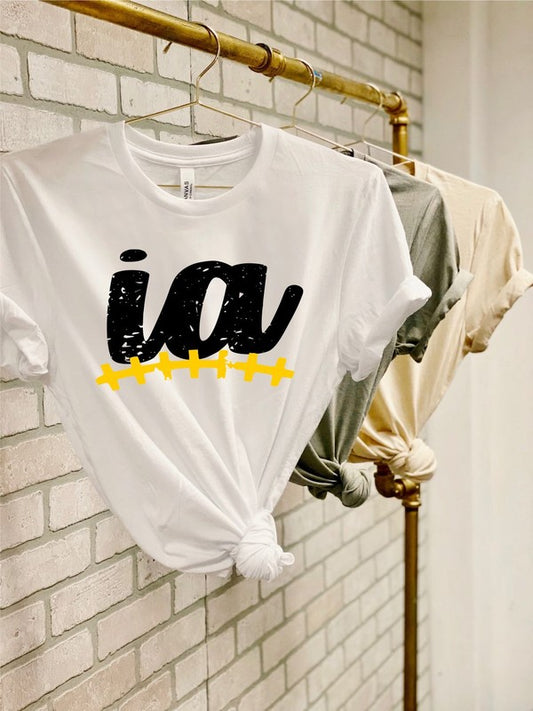 Regular price $29.99 USDRegular priceUnit price / perSale price $29.99 USDIowa IA 2 Color Football Stitch Boutique Tee