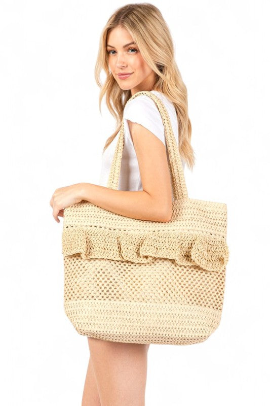 Regular price $35.00 USDRegular priceUnit price / perSale price $35.00 USDRuffle Crochet Straw Tote Bag