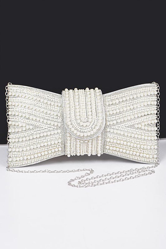 Faux Pearl Studded Bow Tie Clutch Bag