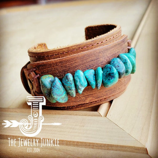 Leather Cuff with Large Natural Turquoise Chunks