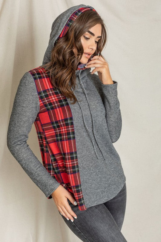 Plaid Side Accent Hooded Tunic