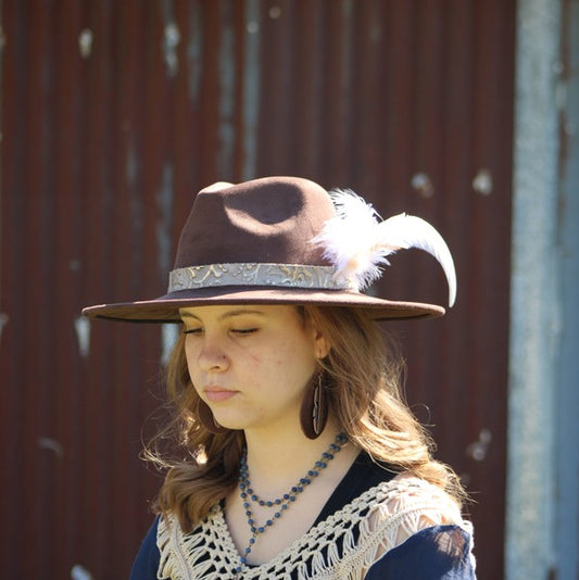 Leather Teardrop Earrings Brown w/ Copper Feather