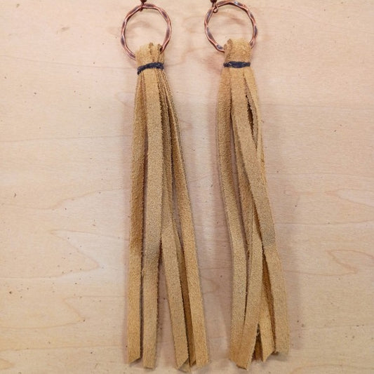 Deer Skin Leather Tassel Earring-Saddle Tan
