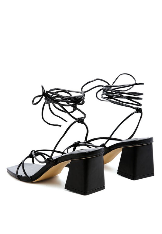 CHASM RUCHED SATIN TIE UP BLOCK HEELED SANDALS