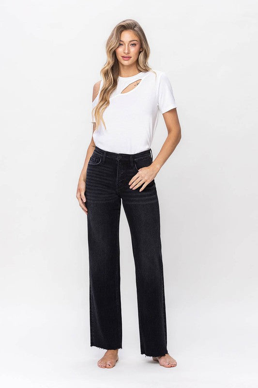 HIGH WAISTED BUTTON WIDE LEG JEANS JBJ1087