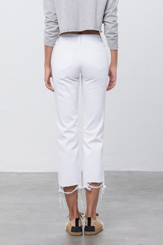 Regular price $55.99 USDRegular priceUnit price / perSale price $55.99 USDHigh Waist Ripped Frayed Hem Straight Jeans