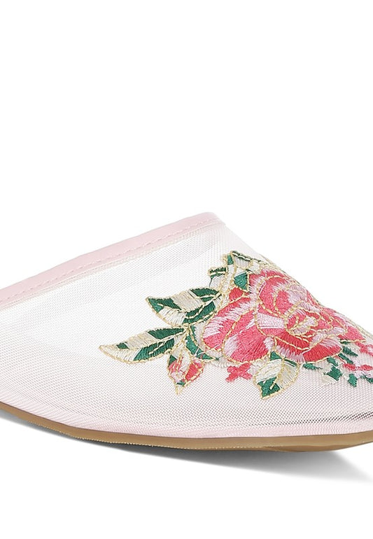 Shara Floral Embroidered Mesh Mules