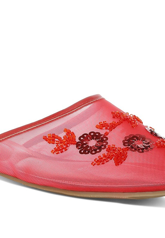 Nahra Mesh Sequin Beaded Mules
