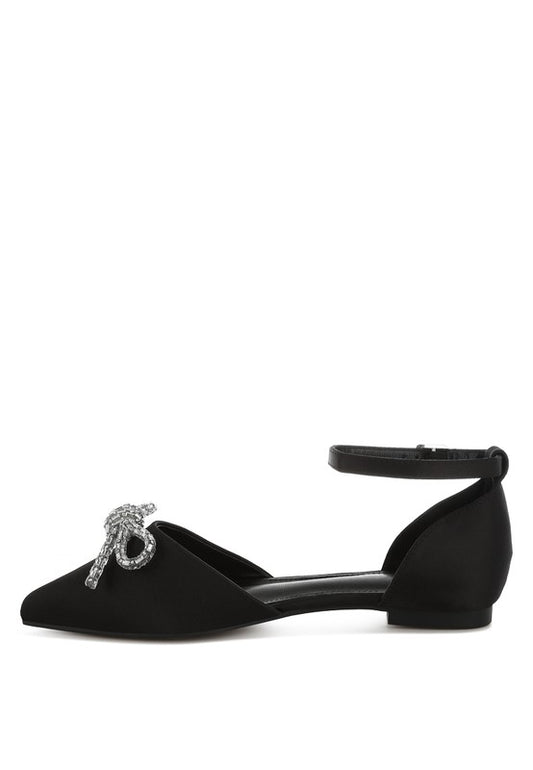 Simina Rhinestone Detail Bow Flat Sandals