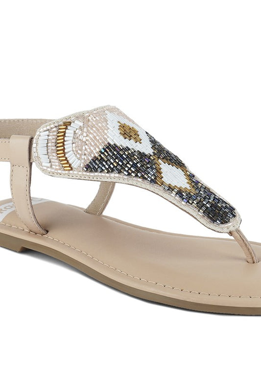 Chitra Pin Buckle Beaded Flat Sandals