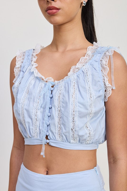Regular price $48.10 USDRegular priceUnit price / perSale price $48.10 USDSLEEVELESS LACE RUFFLED TOP