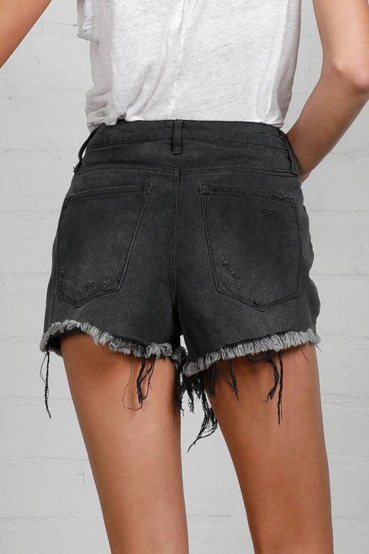 HIGH RISE DESTROYED DENIM SHORTS