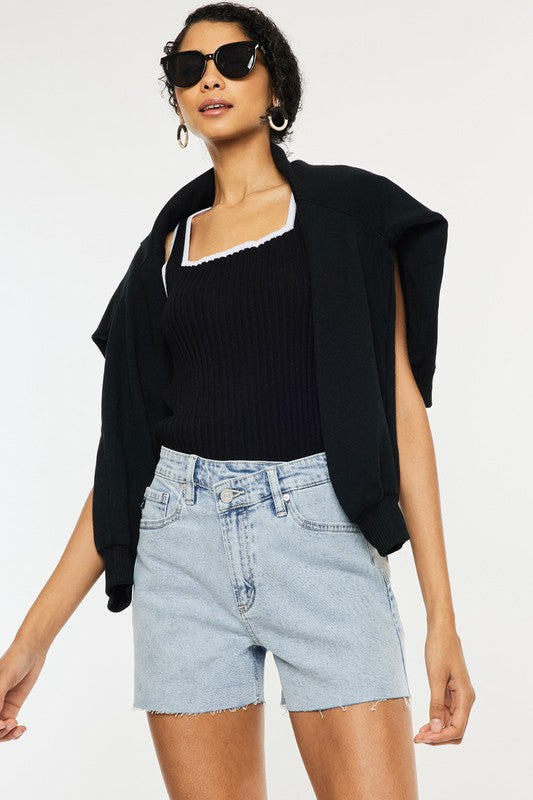 HIGH RISE BOTTOM HEM DISTRESSED BERMUDA SHORTS