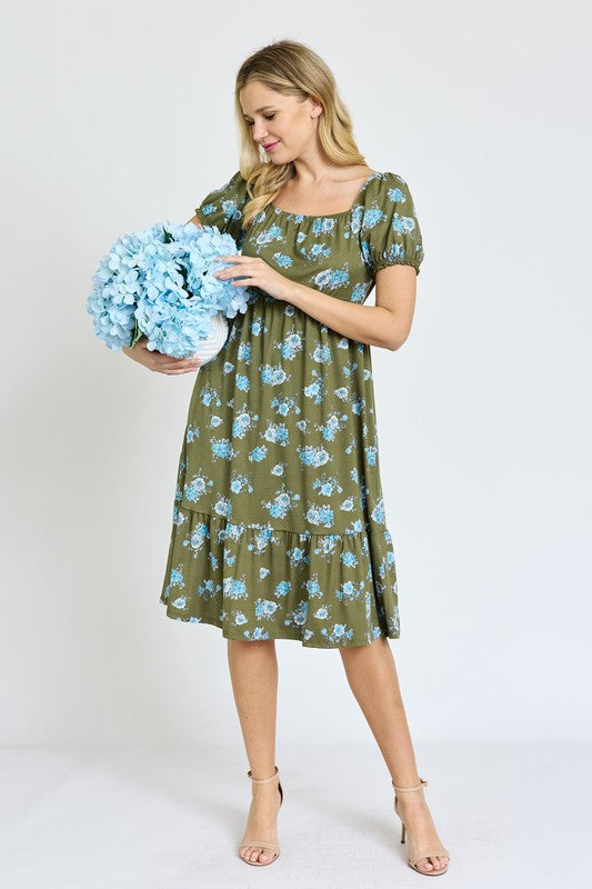 Floral Square Neck Puff Sleeve Boho Dress