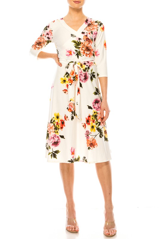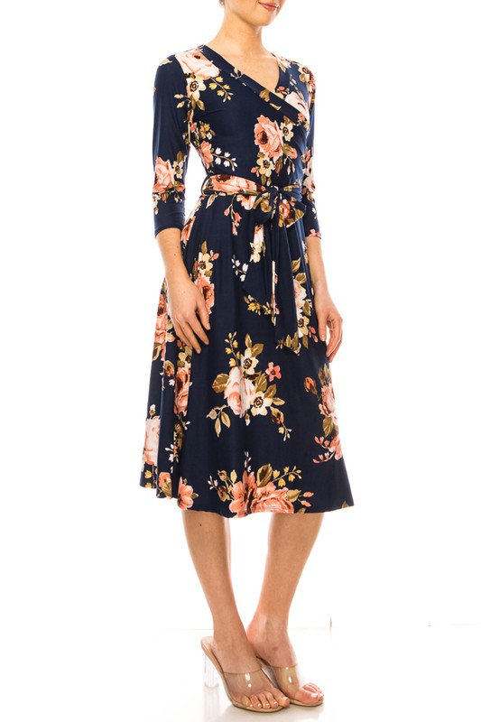 Regular price $34.99 USDRegular priceUnit price / perSale price $34.99 USDFloral print, faux wrap dress with deep V-neck