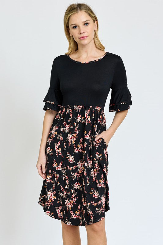 DOUBLE FLOUNCE 3/4 SLEEVE SHORT PARTY DRESS