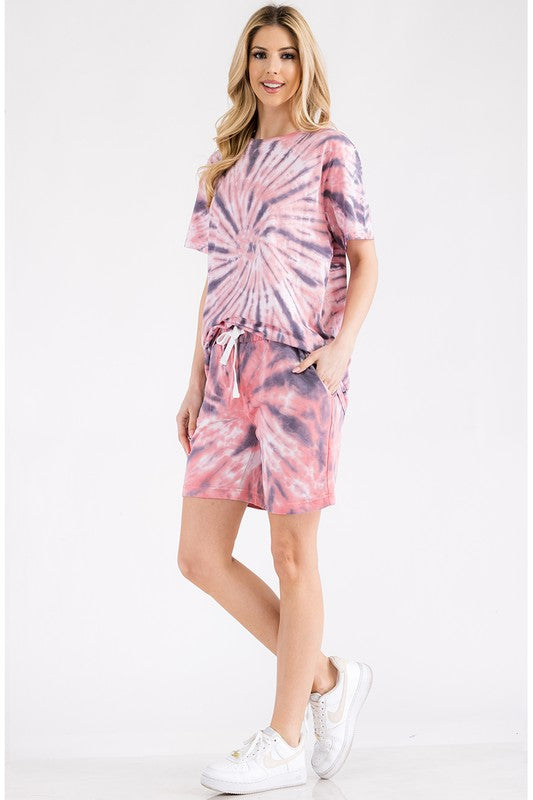 Womens Tye Dye Tee and Short Lounge Set