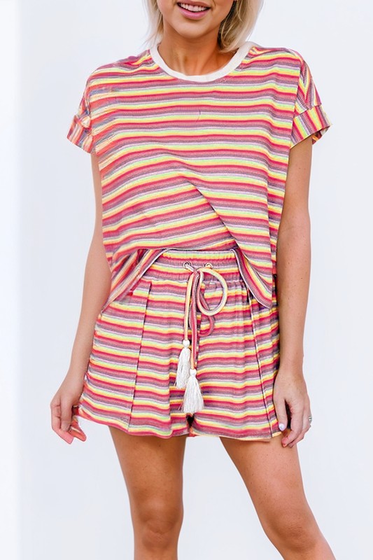 Stripe Crew Neck Tee and Drawstring Shorts Set