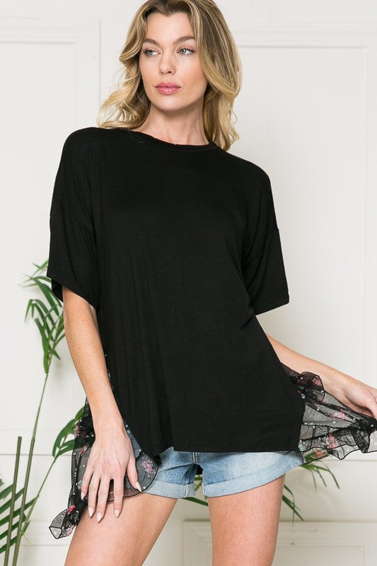 Regular price $36.00 USDRegular priceUnit price / perSale price $36.00 USDMesh Ruffle Side Contrast Tunic