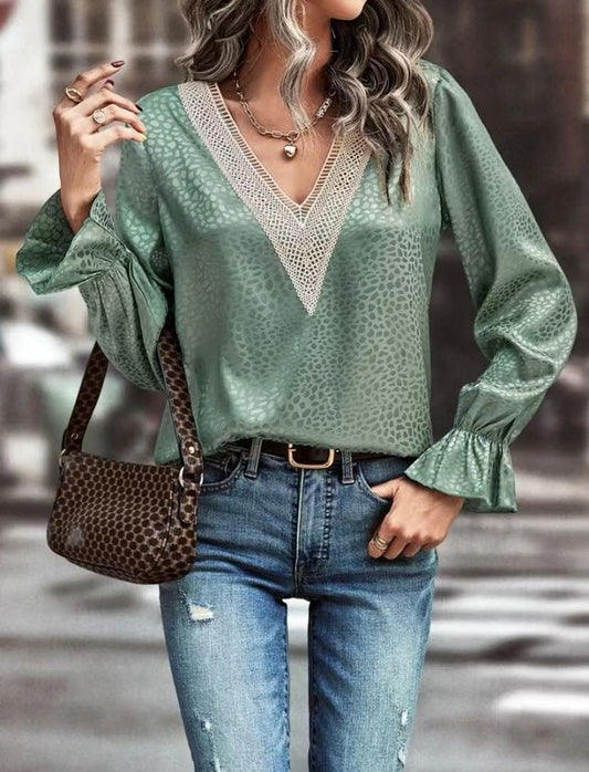 Regular price $46.76 USDRegular priceUnit price / perSale price $46.76 USDMist Green Solid Color Long Sleeve V Neck Top