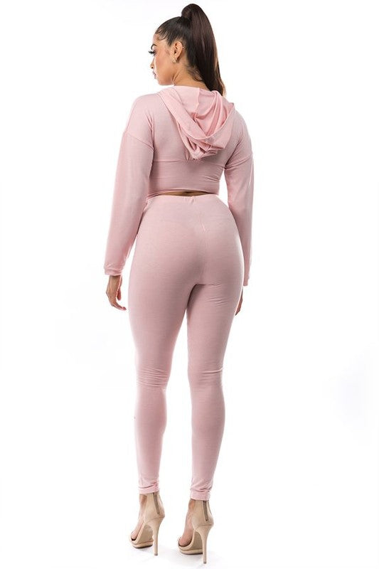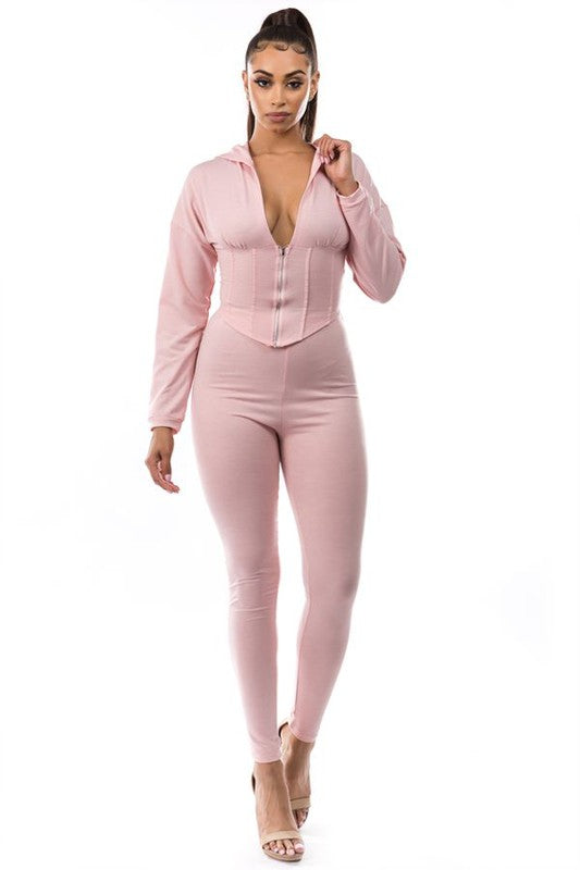 Sexy crop top front zipper corset style look, long sleeves ,with long pant