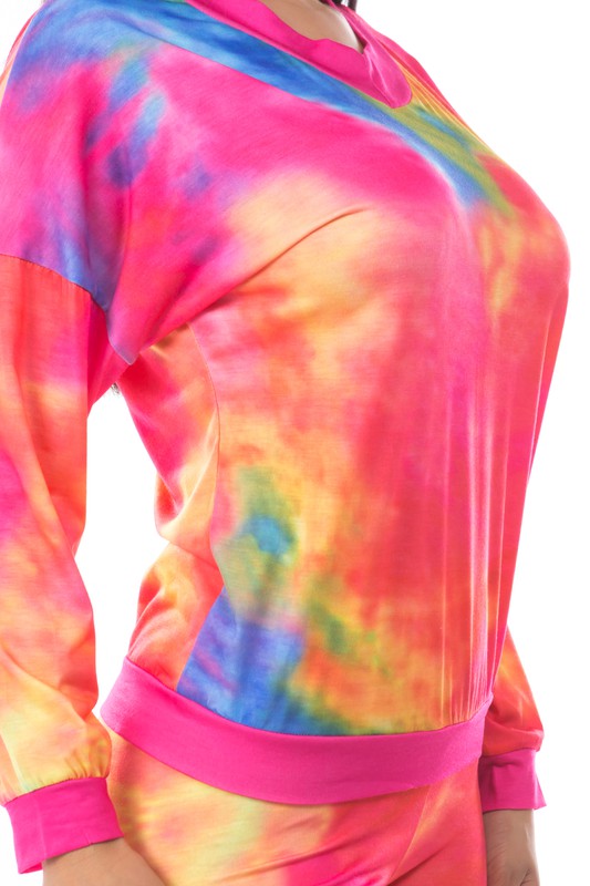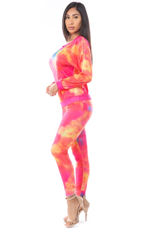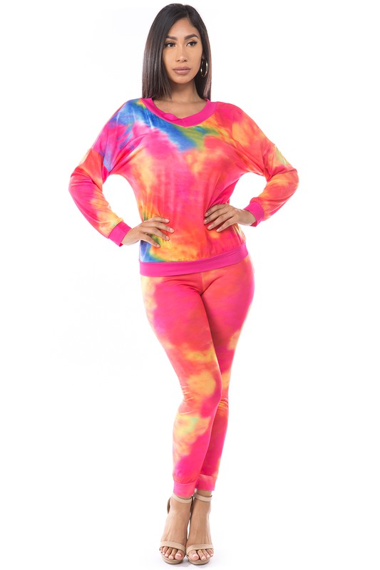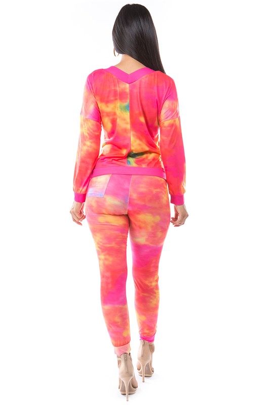 Sexy casual suits tie dry , v neckline long sleeves, elasticized waist pant back pocket