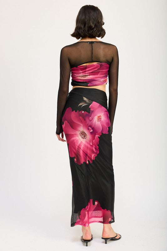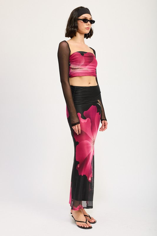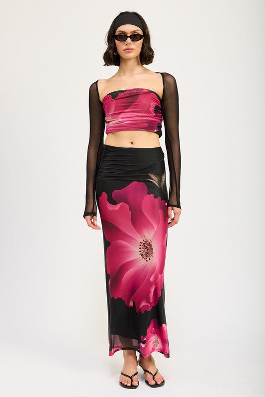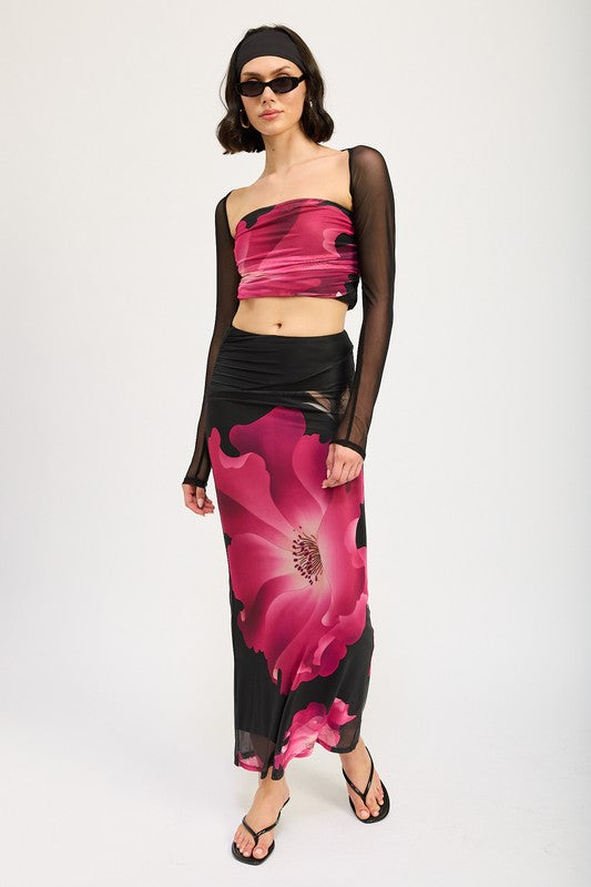 ASYMMETRIC RUCHED MAXI SKIRT