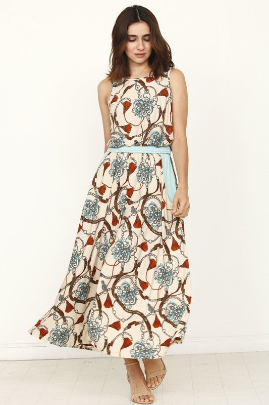 Blouson Chain Tassel Print Cropped Jumpsuit