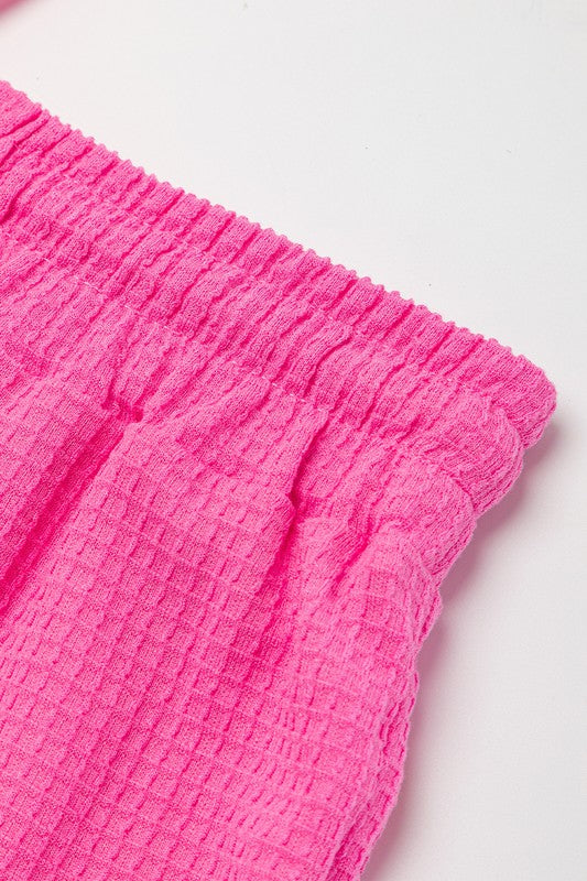 These shorts set made in waffle knit fabric is chic and textured