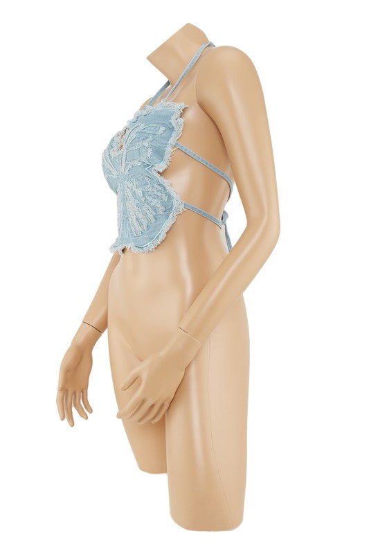 Denim Butterfly Bralette