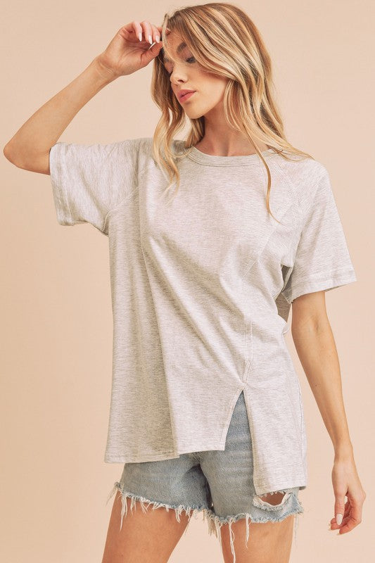 Part of our essential collection, the Dottie crewneck top features an oversized fit with asymmetrical front split detailing and raglan-seamed sleeves that comes in an array of colors.