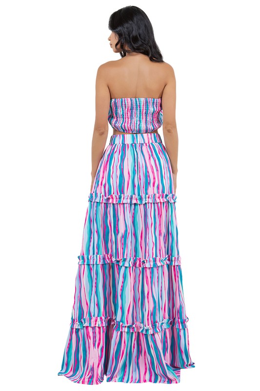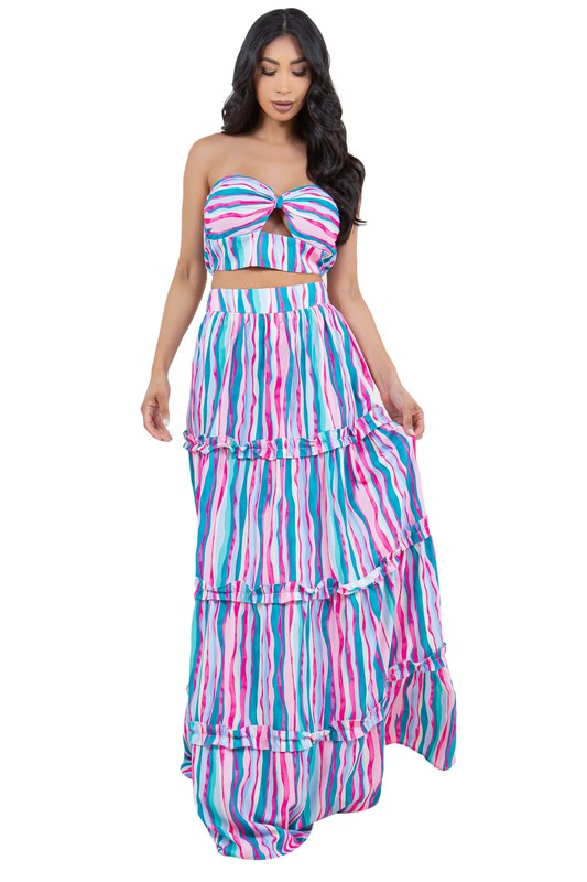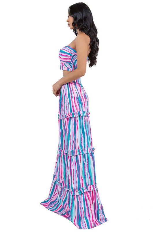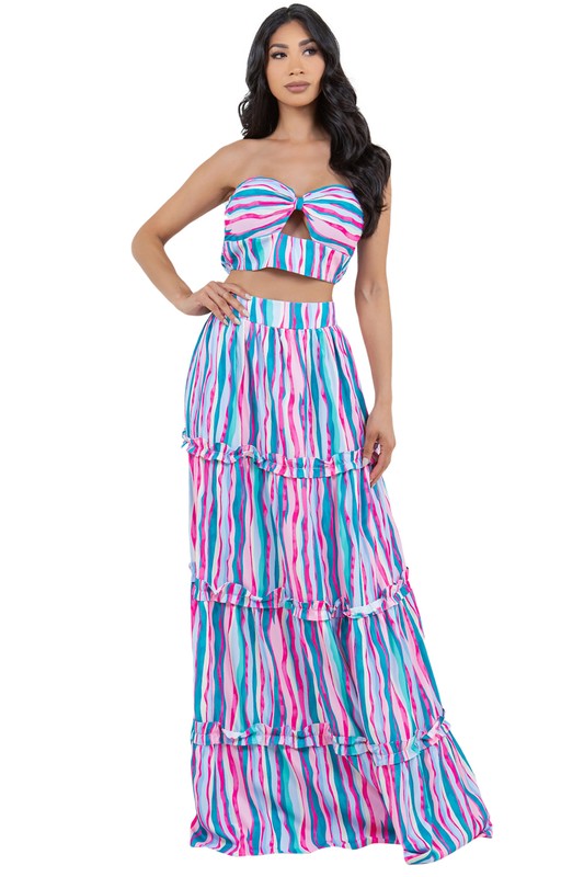 Sexy 2pcs set , bralette top back and waist elasticized , tiered style dress