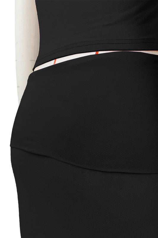 Sexy 2pcs set, Top sleeveless round neckline, elasticized waist long maxi skirt