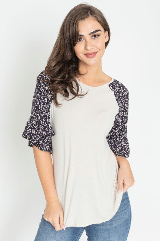 Floral Ruffle Sleeve Tunic