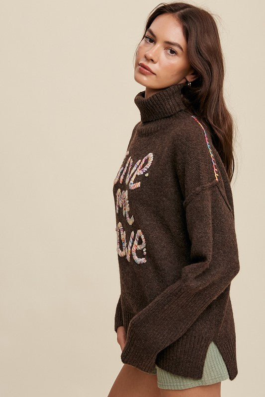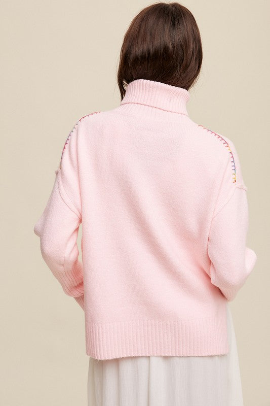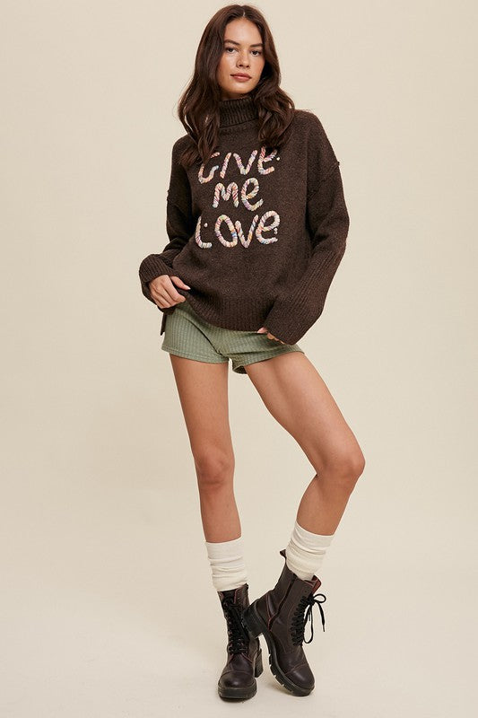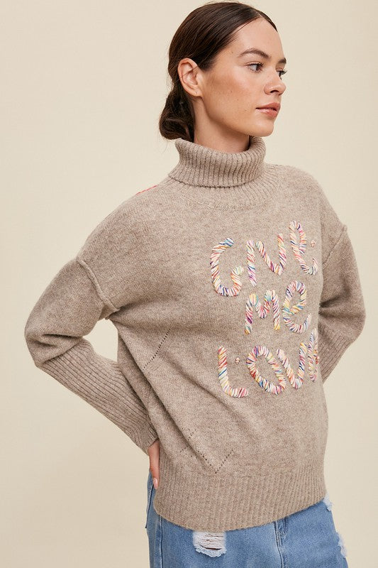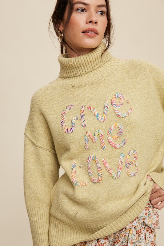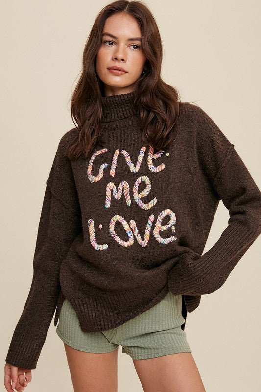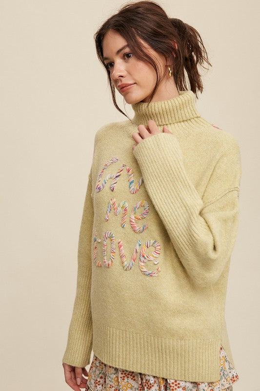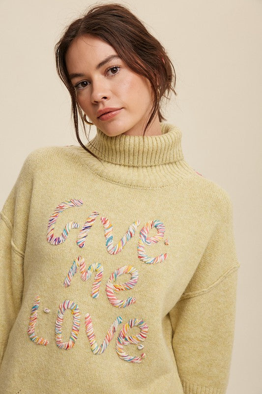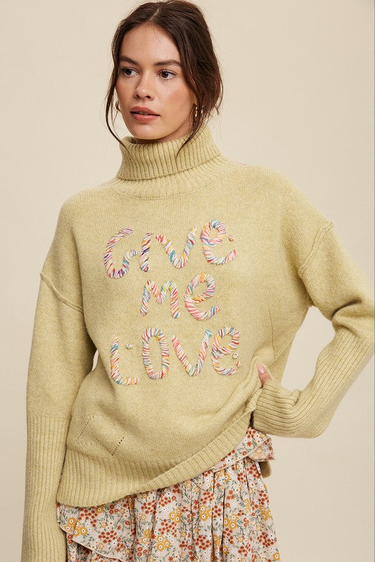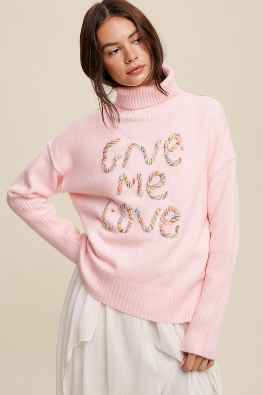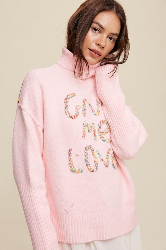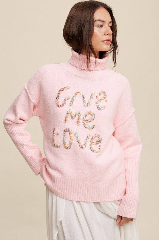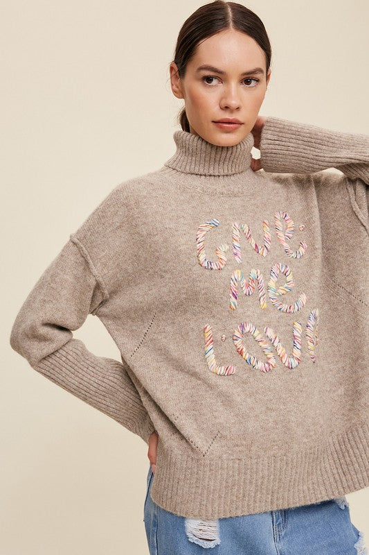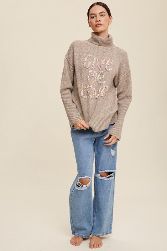 Give Me Love Stitched Mock Neck Sweater