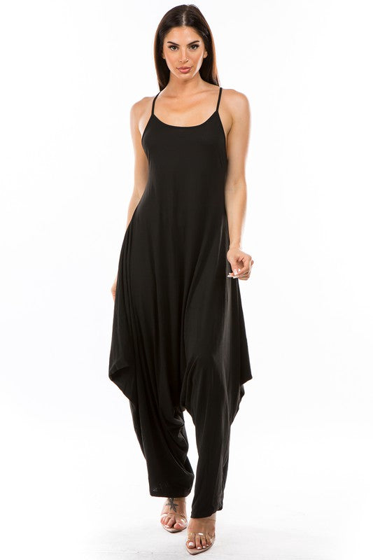 Sexy jumpsuit round neckline ,thin strip, sleeveless , harem pant jumpsuit