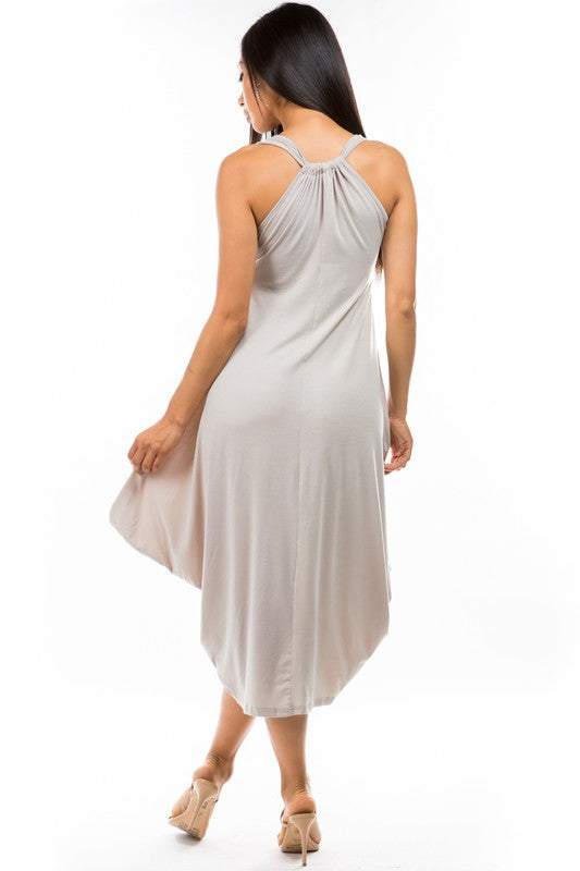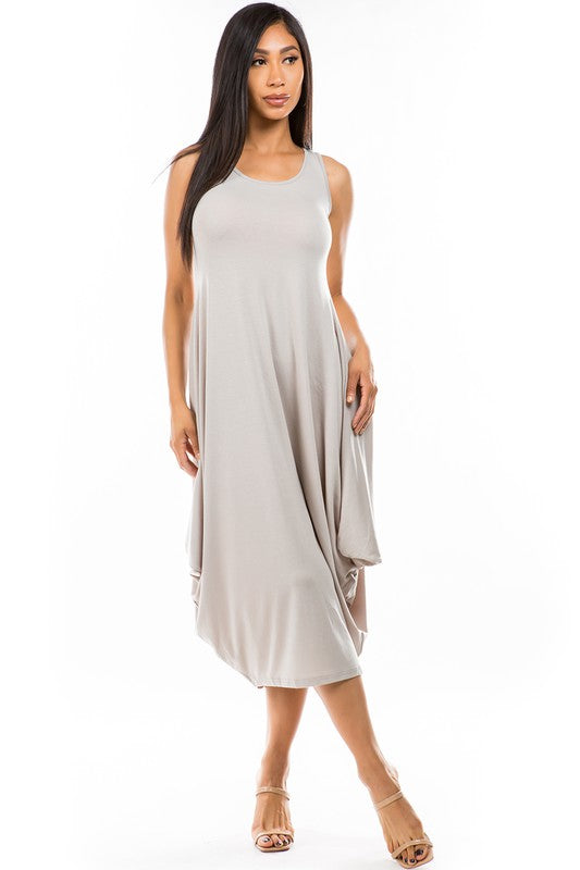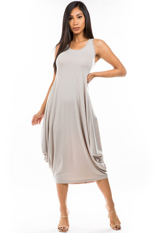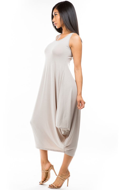 Sexy maxi dress, round neckline sleeveless, harem style look