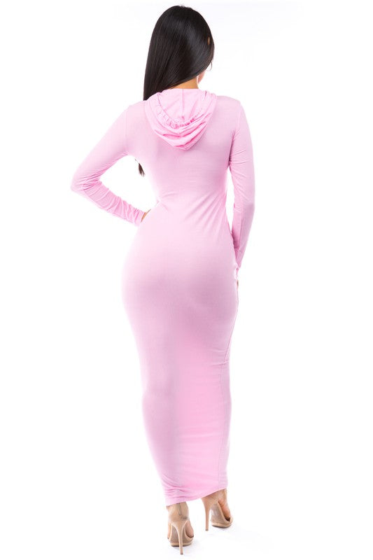 Sexy long maxi dress knit design ,attached hat, long sleeves , body con style