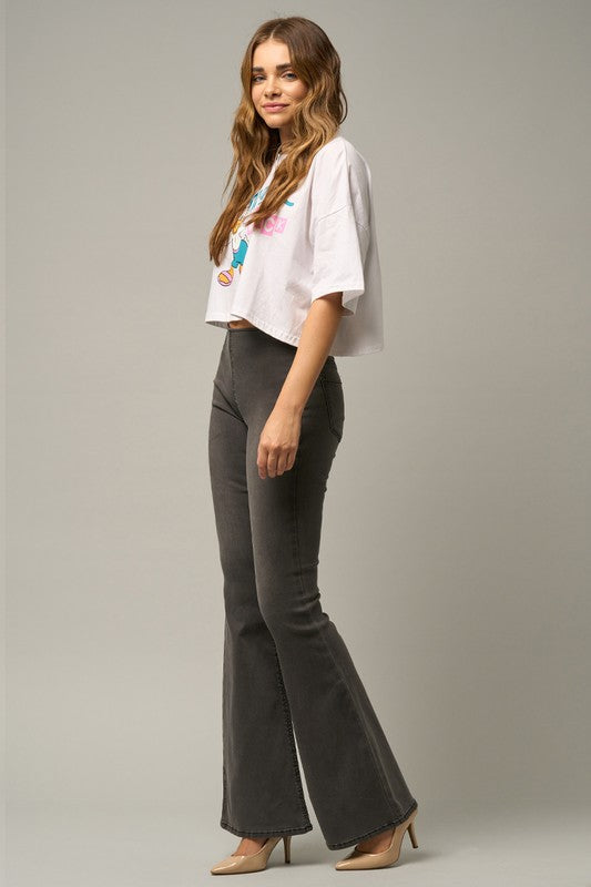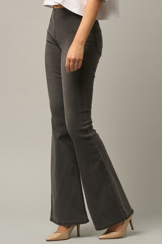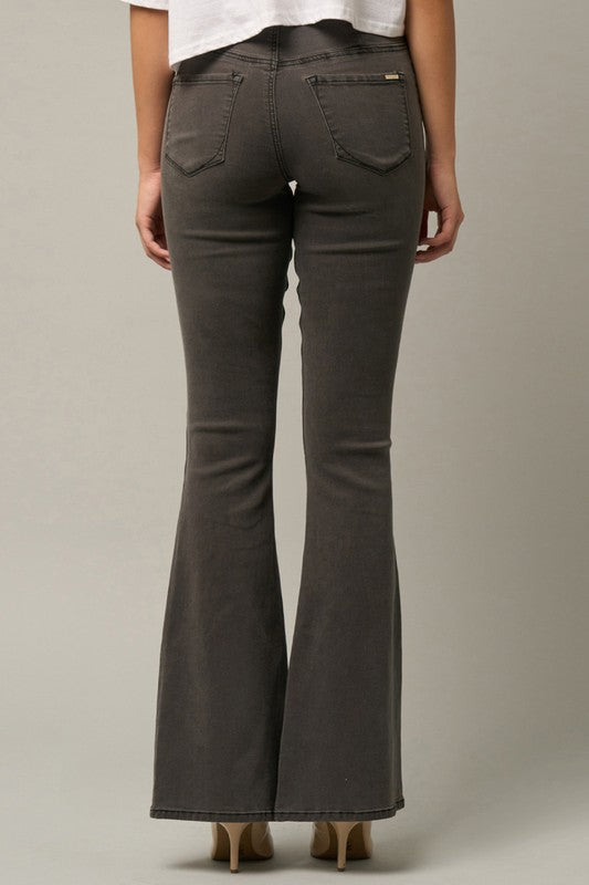 Mid Rise Banded Wide Flare Jeans