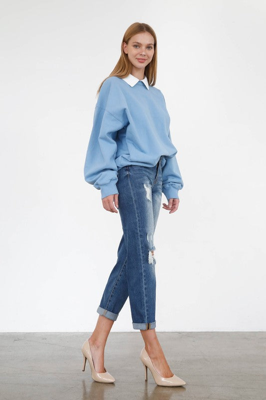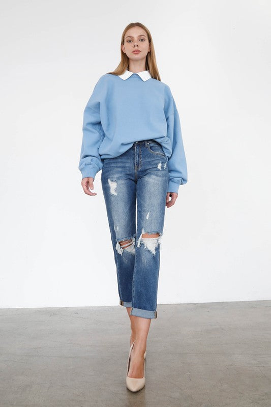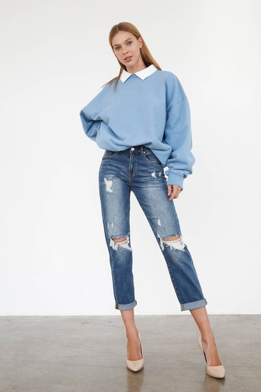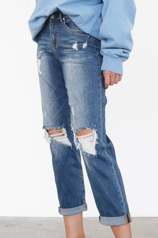 Mid Rise Knee Destroyed Girlfriend Jeans