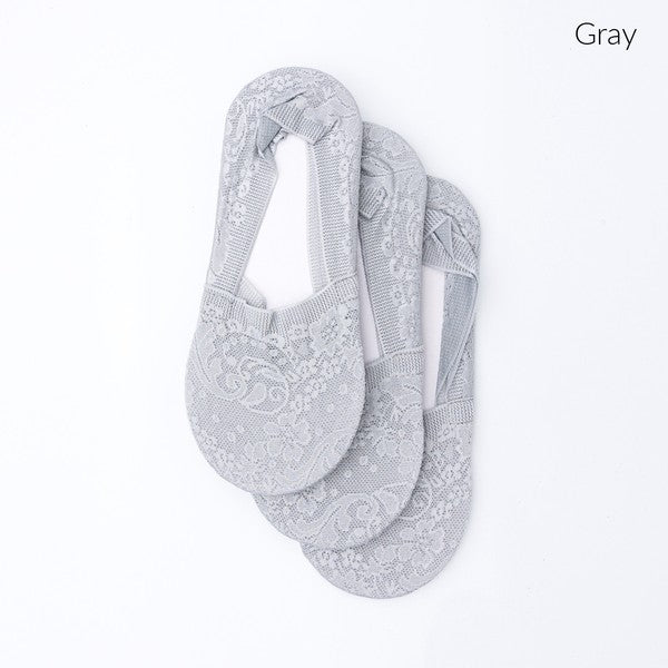 No Slip Floral Lace Sneaker Socks- 3 Pack