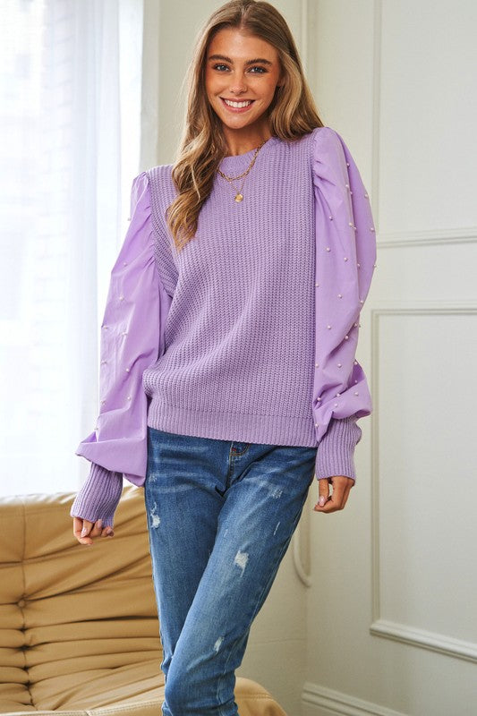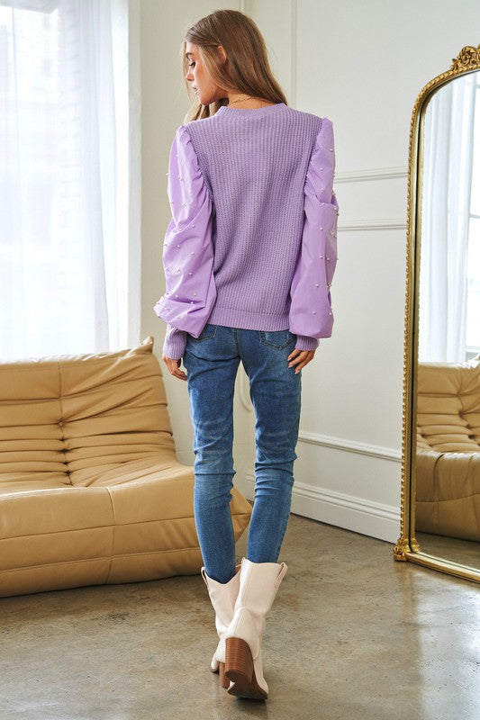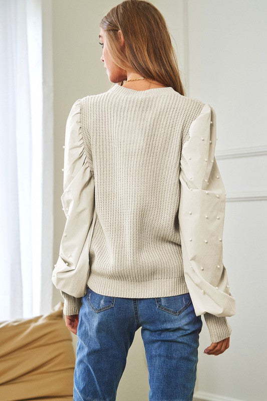 Pearl Embellishments Contrast Sleeves Sweater